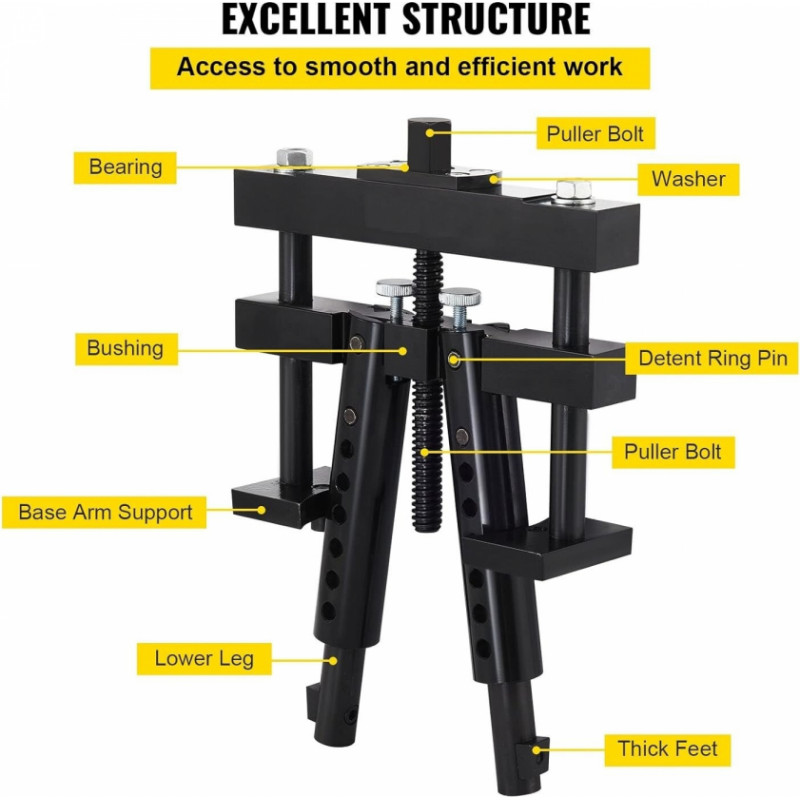 The universal cylinder puller's structure is very stable and reasonable. There are gaskets, bearings, bushings in the upper part, and detent brake pins in the middle. Besides, two baffles with 17.7 mm thickness are designed on both sides. Plus, We will provide you with a wrench so that you can use it with heavy-duty tools. All these designs are constructed to stabilize the whole puller significantly and help you quickly finish the removal work.