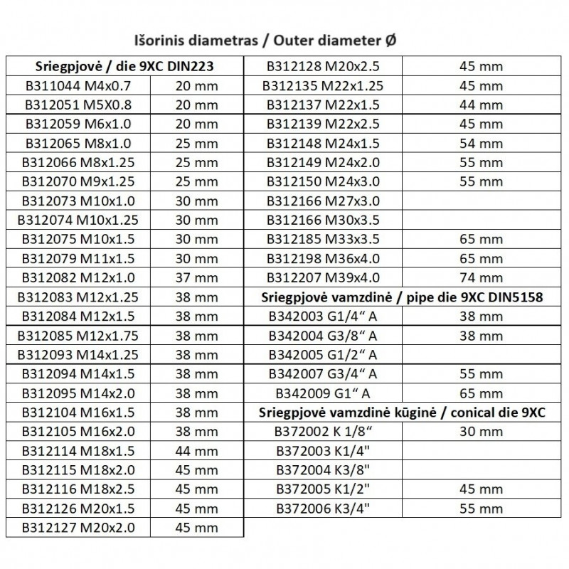 Your shopping cart is empty! Machine and hand round thread dies 9XC DIN223 / M30x3.5