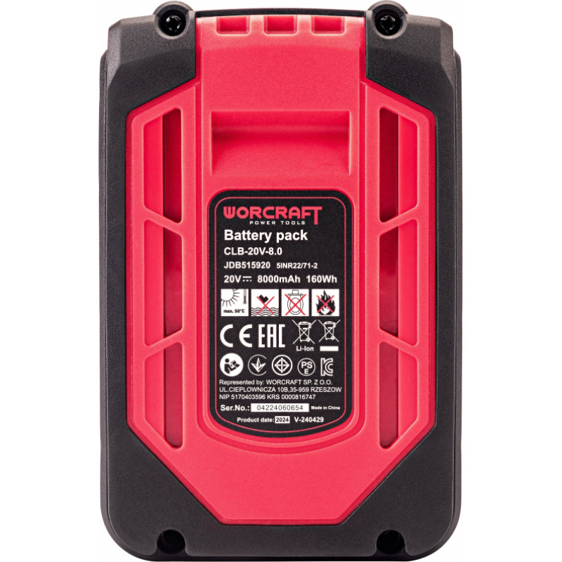 Jūsu iepirkumu grozs ir tukšs! Worcraft Battery for cordless tools WORCRAFT 20V 8.0Ah LI-ION