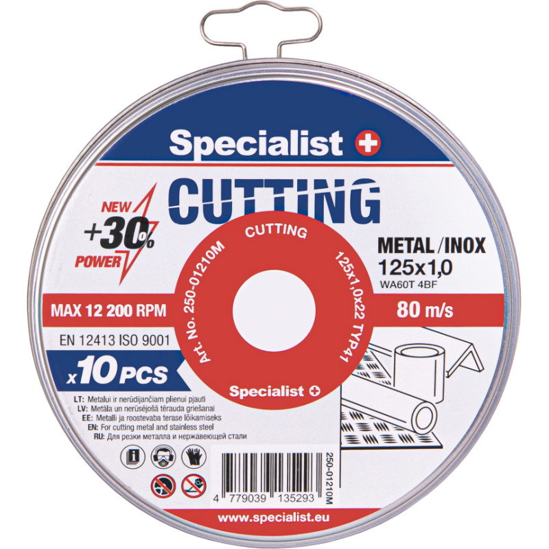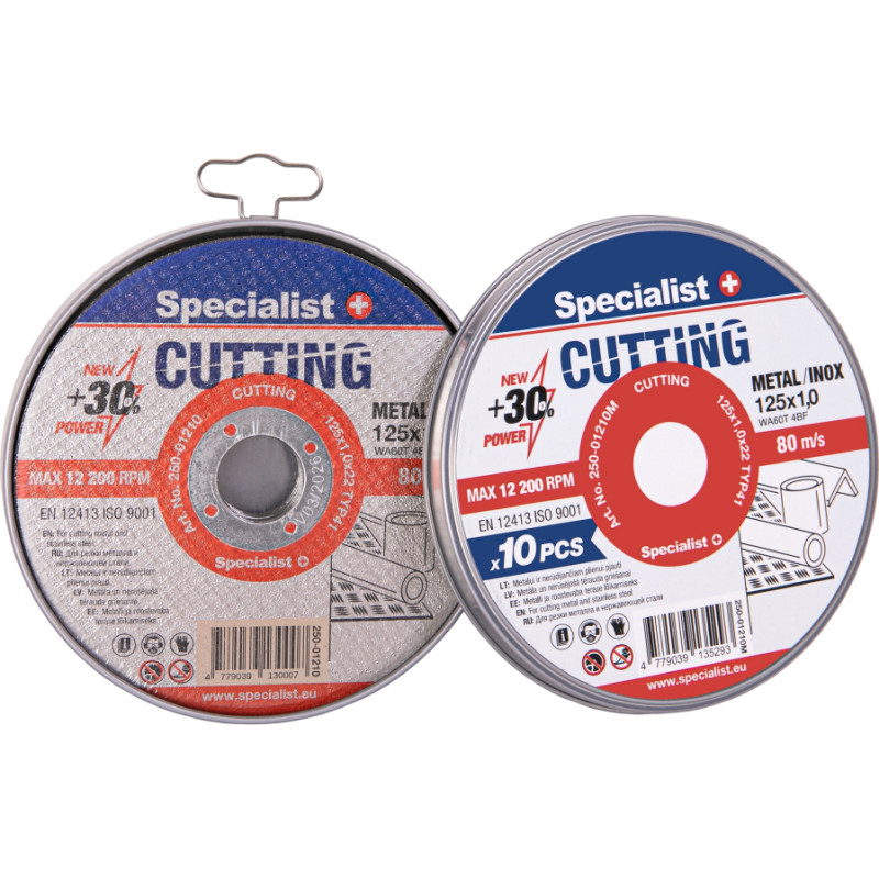Jūsu iepirkumu grozs ir tukšs! Specialist + metāla griešanas disks, 125 x 1 x 22 mm CUTTING, 10 gab. metāl. D