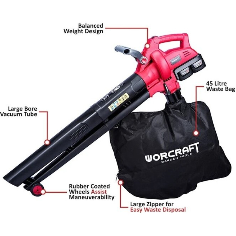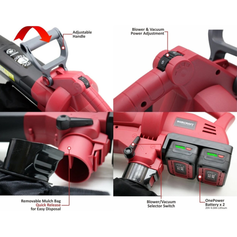 Jūsu iepirkumu grozs ir tukšs! Worcraft Li-ion bezvadu lapu pūtējs, vakuuma mulčere 40V (20V+20V)