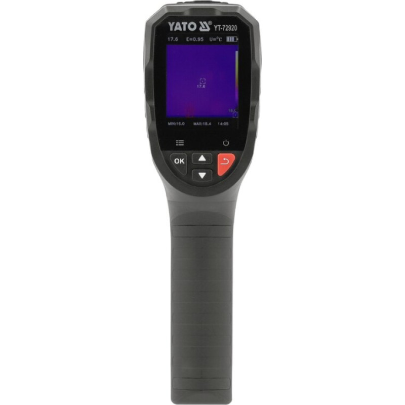 Thermal imaging camera YT-72920 is a compact diagnostic tool with great capabilities. Equipped with a VOx microbolometer (based on vanadium oxide) with a native resolution of 96 x 96 px, which, thanks to Super Resolution technology, generates thermal images with an effective resolution of 240 x 240 px. Combined with a relatively fast refresh rate of 18 Hz, it allows for detecting temperature differences and transforming them into a smooth and clear image. The higher the resolution and refresh rate, the smoother and clearer the image.