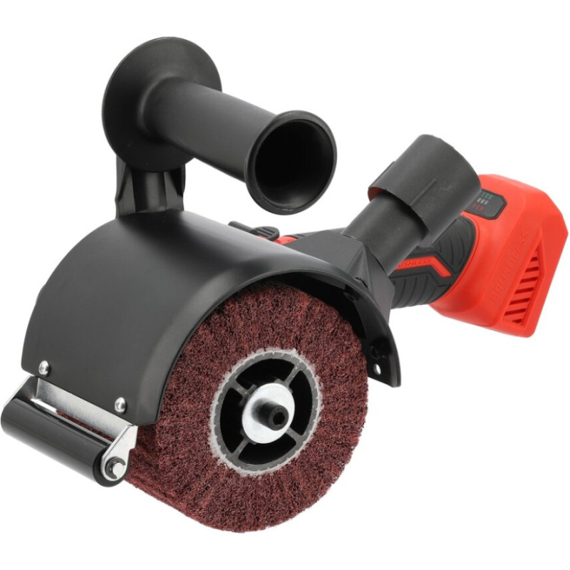 The cordless sander is designed for surface treatment using drum brushes, allowing for sanding, cleaning, and structuring of materials. Depending on the brush used, the tool is effective when working with wood, metal, and selected synthetic materials. The device enables the removal of paint coatings, prepares surfaces for further processing, and also creates a satin or aging effect on the material. It is a practical tool for renovation, carpentry, and locksmithing tasks, allowing for quick surface preparation and achieving a decorative material structure.
