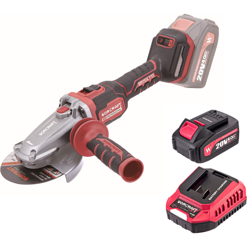Jūsu iepirkumu grozs ir tukšs! Worcraft Li-ion Cordless brushless angle grinder (flat head) 125mm 20V