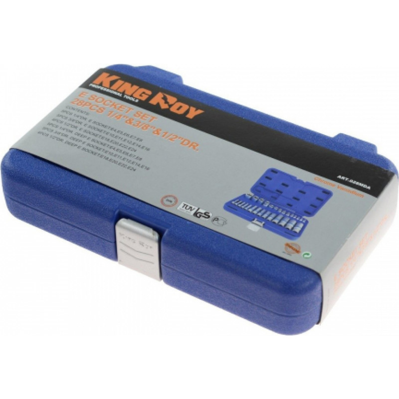 Jūsu iepirkumu grozs ir tukšs! Kingroy 1/4" + 3/8" + 1/2" Dr. E - Kontaktligzdu komplekts 28gab.